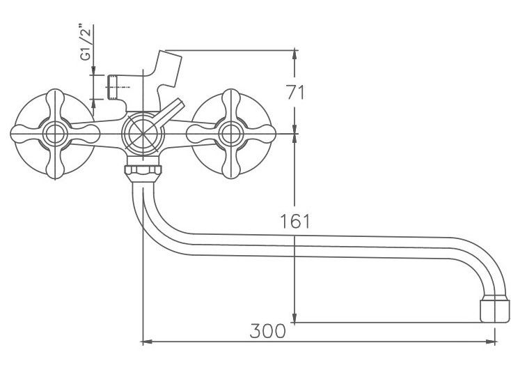 Диаметр декоративных чашек 70 мм.Душевой гарнитур в комплекте.Межосевое расстояние (расстояние между выходом горячей и холодной трубы) 150 мм.Данное расстояние изменяется за счет входящих в комплект эксцентриков на 10 мм в большую или меньшую стороны.
