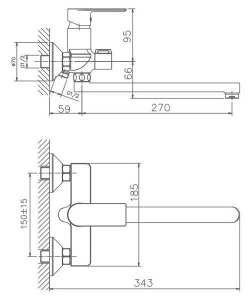 Керамический картридж 35 мм.Диаметр декоративных чашек 70 мм.Душевой гарнитур в комплекте.Межосевое расстояние (расстояние между выходом горячей и холодной трубы) 150 мм.Данное расстояние изменяется за счет входящих в комплект эксцентриков на 15 мм в большую или меньшую стороны.