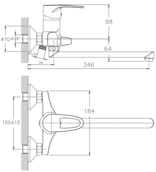 Керамический картридж 40 мм.Диаметр декоративных чашек 70 мм.Душевой гарнитур в комплекте.Межосевое расстояние (расстояние между выходом горячей и холодной трубы) 150 мм.Данное расстояние изменяется за счет входящих в комплект эксцентриков на 15 мм в большую или меньшую стороны.