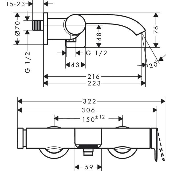 Смеситель для ванны Hansgrohe Finoris 75420700 Подробнее