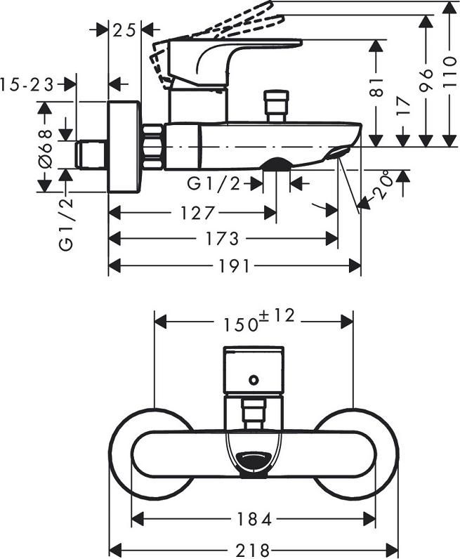 Смеситель для ванны Hansgrohe Rebris S 72443670 черный