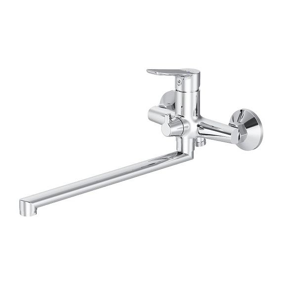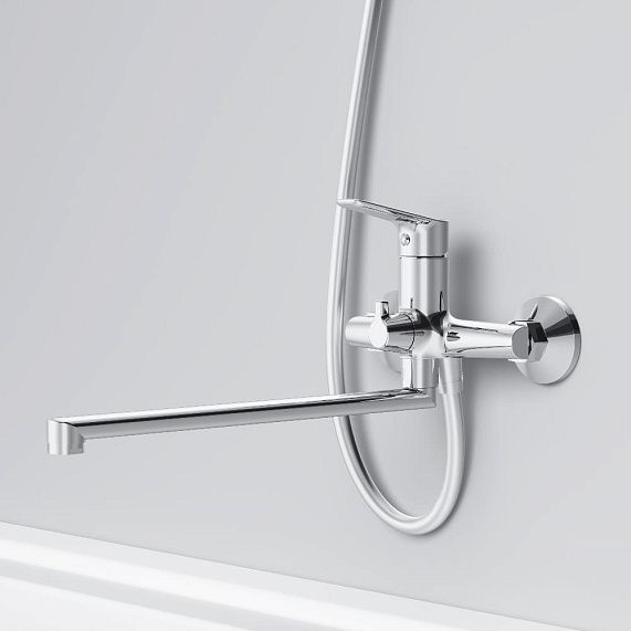 универсальный длинный излив позволяет использовать смеситель как для ванны так и для рядом стоящей раковины;