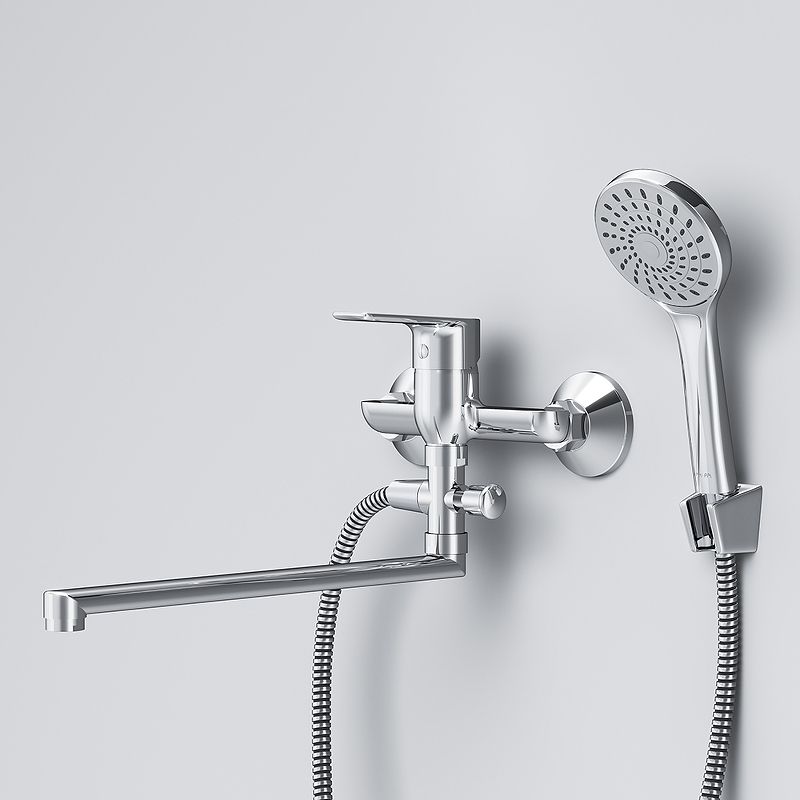 Смеситель для ванны AM.PM Gem F90A90100 универсальный с душевым гарнитуром.Стильное универсальное решение для ванной комнаты - качественный смеситель для ванны и душа с длинным поворотным изливом с душевым набором. Универсальный длинный излив позволяет использовать смеситель как для ванны, так и для рядом стоящей раковины. Функциональный держатель для ручного душа на два положения добавит удобства использования. Душевой шланг длиной 150 см позволит наслаждаться душем даже высокому человеку. Максимум функций за разумную плату в одном изделии! Ультрамодный дизайн ручки придает смесителю дополнительную динамику и дарит непревзойденную легкость управления. Вы почувствуете это с первого прикосновения. Точная инженерия для Вашего комфорта: благодаря обширной зоне движения ручки управлять температурой воды стало еще проще.