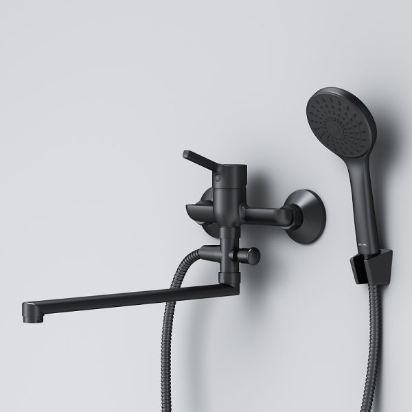 Смеситель для ванны и душа Am.Pm X-Joy F85B90122 универсальный Черный матовыйСтильное универсальное решение для ванной комнаты - качественный смеситель для ванны и душа с длинным поворотным изливом с душевым набором. Универсальный длинный излив позволяет использовать смеситель как для ванны, так и для рядом стоящей раковины. Функциональный держатель для ручного душа на два положения добавит удобства использования. Душевой шланг длиной 150 см позволит наслаждаться душем даже высокому человеку. Максимум функций за разумную плату в одном изделии. Ультрамодный дизайн ручки придает смесителю дополнительную динамику и дарит непревзойденную легкость управления. Вы почувствуете это с первого прикосновения. Точная инженерия для Вашего комфорта: благодаря обширной зоне движения ручки управлять температурой воды стало еще проще.