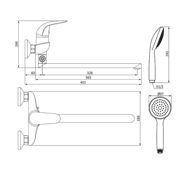 Смеситель для ванны и душа Damixa Eclipse 319500001 хром