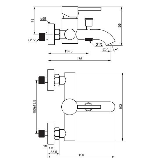 Смеситель для ванны и душа Damixa Scandinavian Pure 363000000 хром