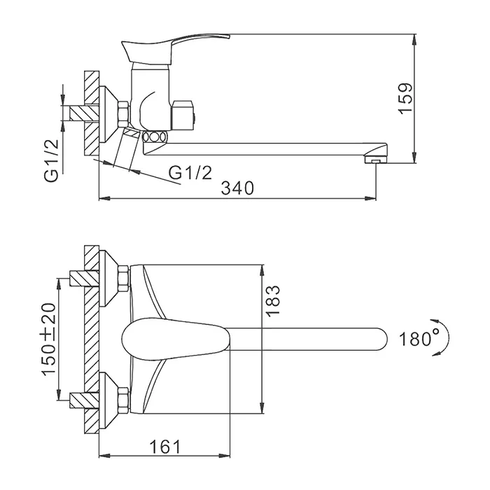 Длина излива, см:34