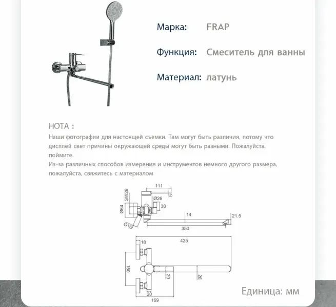 Смеситель для ванны и душа Frap F2267 хром Подробнее