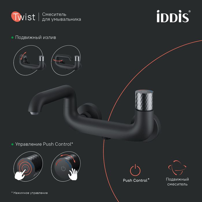 Смеситель для ванны IDDIS Twist Push Control TWIBLBTi02WA чёрный матовый купить