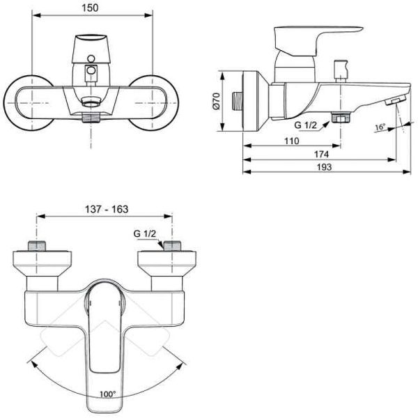 Смеситель для ванны Ideal Standard Connect Air A7033AA хром купить