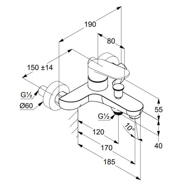 • Имеет встроенный девиатор, автоматически переключающий поток с душа на излив при закрытии воды