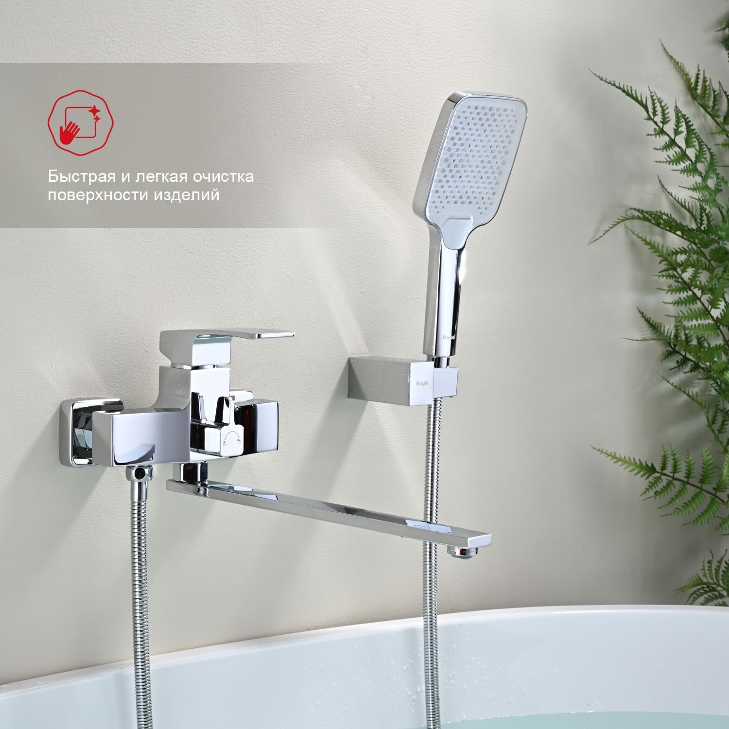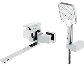 Смеситель для ванны Raglo универсальный.Материал: латунь.Управление: однорычажное.Механизм: керамический картридж.Излив: поворотный.Аэратор.Количество режимов струи ручного душа: 3.Переключатель ванна/душ;Отверстия для монтажа: 2.Монтаж: на стену;В комплекте поставки: смеситель для ванны, ручной душ, душевой шланг, настенный держатель ручного душа, комплект креплений.