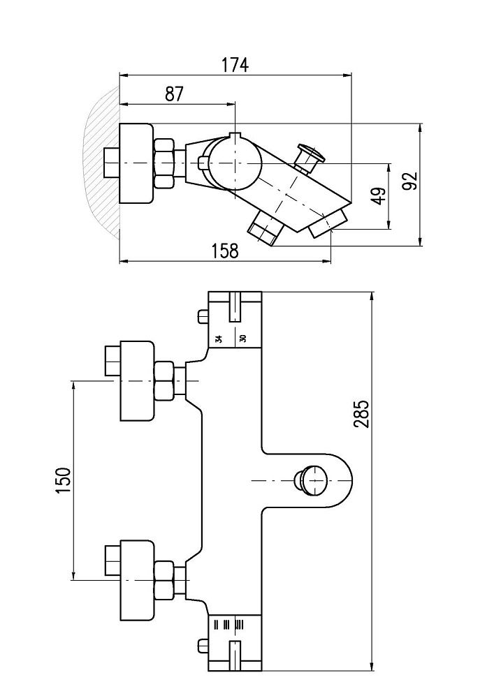 Смеситель для ванны Rav Slezak Termo TRM54.5CMATC черный