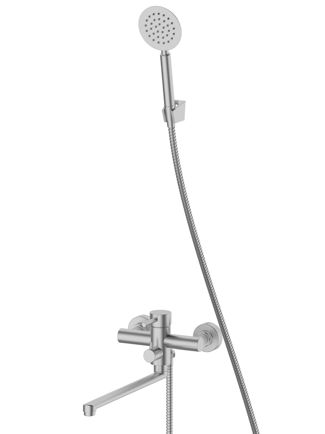 Смеситель для ванны RUSH Melos арт. SUS1101-51 c длинным поворотным изливом изготовлен из нержавеющей стали SUS304 и имеет рычажное управление. Излив изготовлен из нержавеющей стали.В смеситель установлен картридж D-35 с керамическими пластинами, а также дивертор (переключатель). Пластиковый аэратор с нержавеющим корпусом.В комплекте однорежимная душевая лейка и душевой шланг длиной 1,5м., держатель душевой лейки, фум-лента, индивидуальный пакет, паспорт, гарантийный талон.