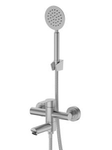 Смеситель для ванны RUSH Santiago арт. SUS1116-44 с коротким изливом изготовлен из нержавеющей стали SUS304 и имеет рычажное управление.В смеситель установлен картридж D-35 с керамическими пластинами. Пластиковый аэратор с нержавеющим корпусом, угол наклона аэратора-7гр.В комплекте однорежимная душевая лейка и душевой шланг длиной 1,5м., держатель душевой лейки, фум-лента, индивидуальный пакет, паспорт, гарантийный талон.