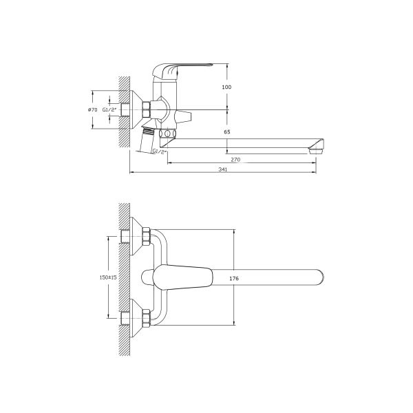 • Высота смесителя: