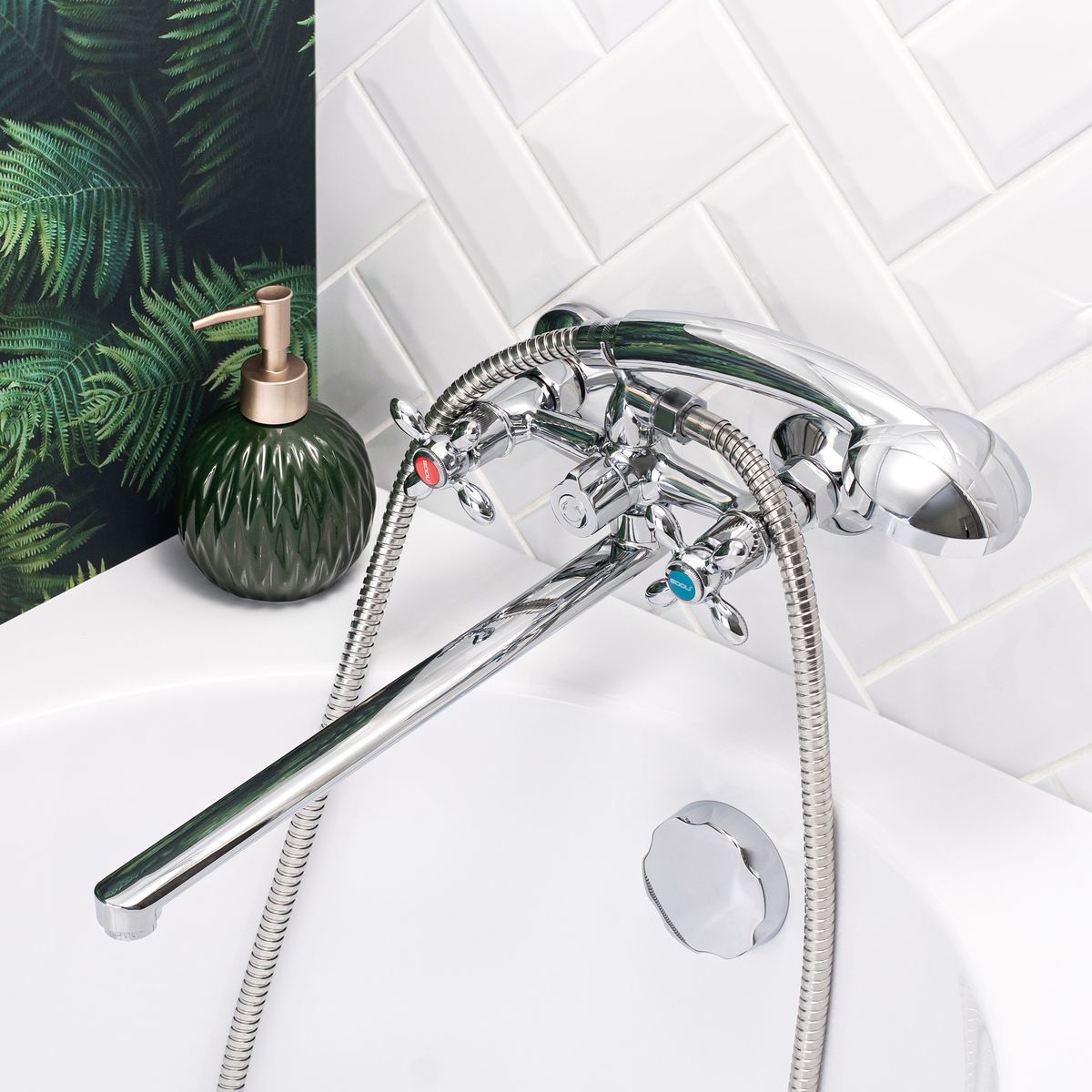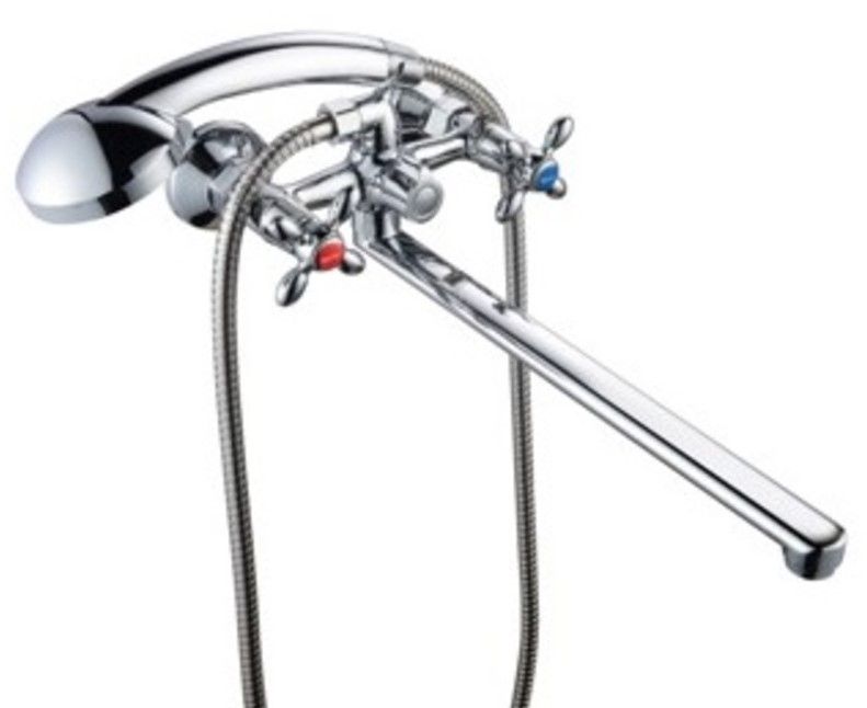 Стильный смеситель с двумя рукоятками Торговой марки BOOU избавит от лишних трат и поможет освободить место в ванной комнате. Модель оснащена длинным прямым изливом, что позволяет удобно использовать его над раковиной и прилегающей к ней ванной. В ком-плекте удобная трехрежимная лейка с гибким шлангом и настенный держатель.