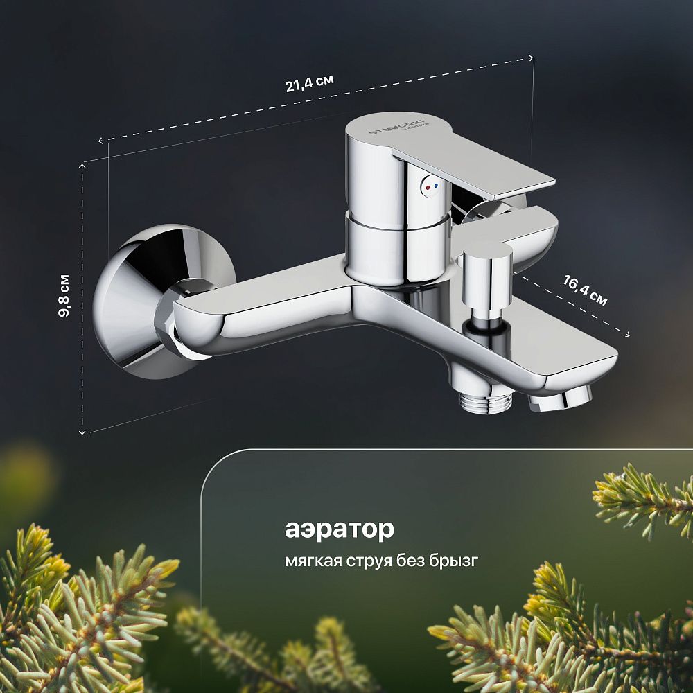 Смеситель Stworki «Хельсинки HFHS10000» подкупает легкой интеграцией в любой интерьер. В основе дизайна лежат лаконичные геометрические формы и зеркальный блеск поверхности (покрытие High Gloss). Регулировать напор и температуру воды удобно за счет фирменного керамического картриджа Damixa. С излива на душ переключает кнопочный дивертор. Модель предназначена для монтажа над ванной, имеется возможность подключения душевого гарнитура.