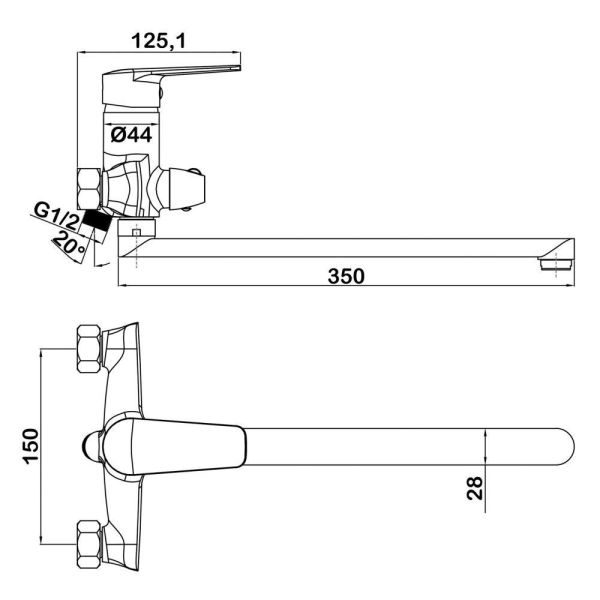 • Длина излива, см: