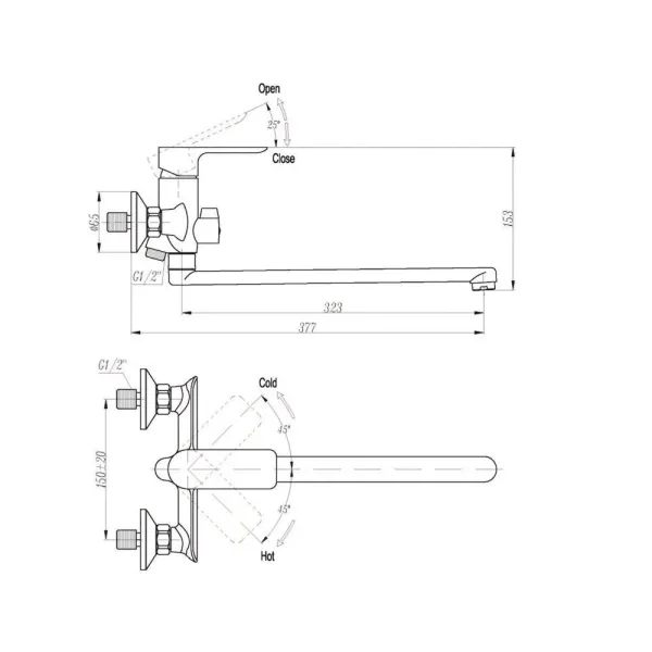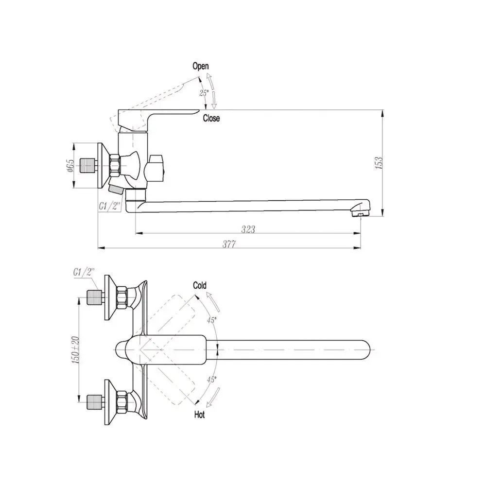 16307 Смеситель Triton для ванны, длинный излив, однорычажный, белый