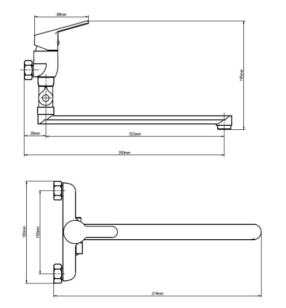 • Длина излива, см: