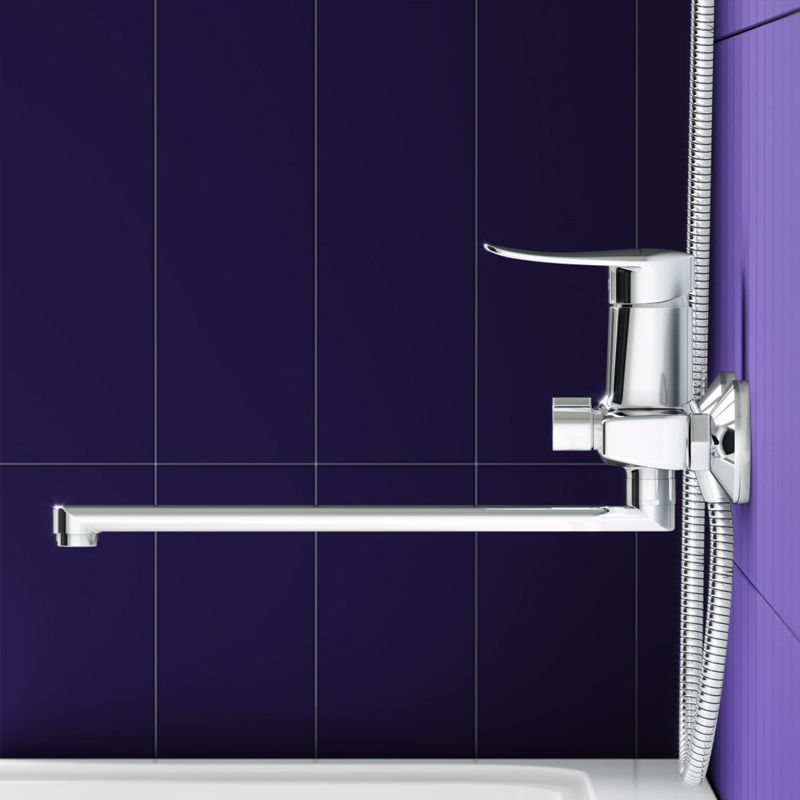 Смеситель для ванны и душа: излив поворотный, керамический картридж, в комплекте эксцентрики и декоративные розетки, душевой шланг 1500 мм, держатель (на два положения) и душевая лейка d 95 мм (1 режим).
