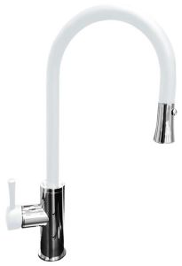 На первый взгляд смеситель с выдвигающейся лейкой сложно отличить от обычного. Только его носик отличается от излива. Сам подвижный шланг встраивается в излив крана и в обычном положении незаметен. Чтобы лейка выдвинулась, следует потянуть её, шланг вылезет из крана и можно будет удобно пользоваться.