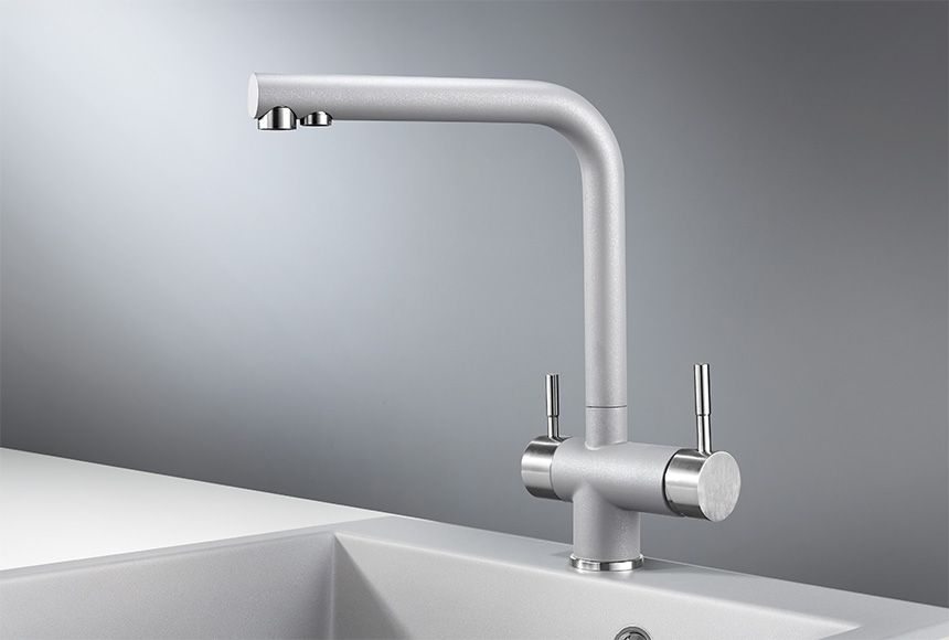 Смеситель для кухонной мойкиЦветовая гамма: Алюминиум, Классик, Антик, Песок, Пирит, Базальт, Арктик, Эспрессо, Графит, Черный, ШварцГибкая подводка (3 шт.); набор для крепления; прокладки уплотнительные (2 шт.); аэраторГарантийный срок от производителя - 5 лет
