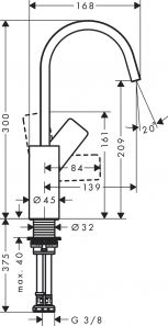 • Высота смесителя: