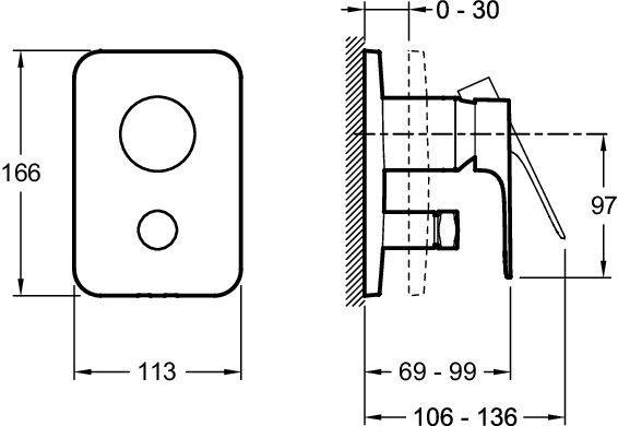 Смеситель Jacob Delafon ALEO+ E98718-CP встраиваемый.Регулирование температуры и расхода воды благодаря механическому mixer картриджу