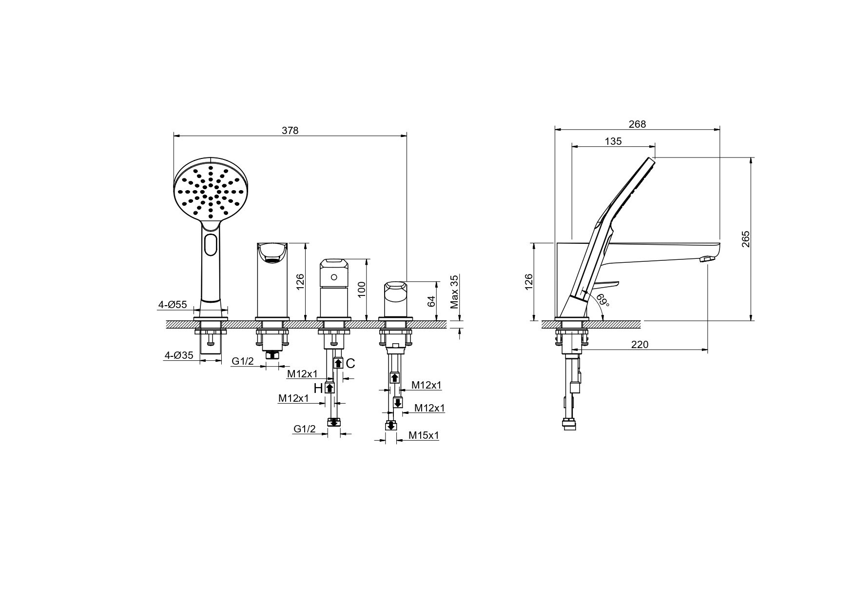 Высота излива (см): 9,72Длина излива (см): 22Аэратор: Neoperl, ШвейцарияГибкая подводка в комплектеДлина шланга для лейки (см): 150