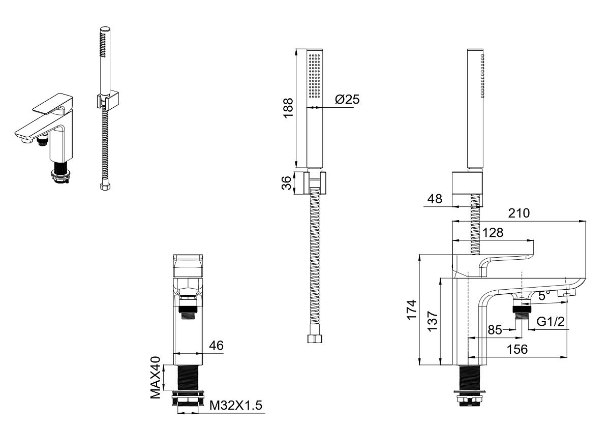 Смеситель на борт ванны Aquatek Вега AQ1044BGM оружейная сталь Подробнее