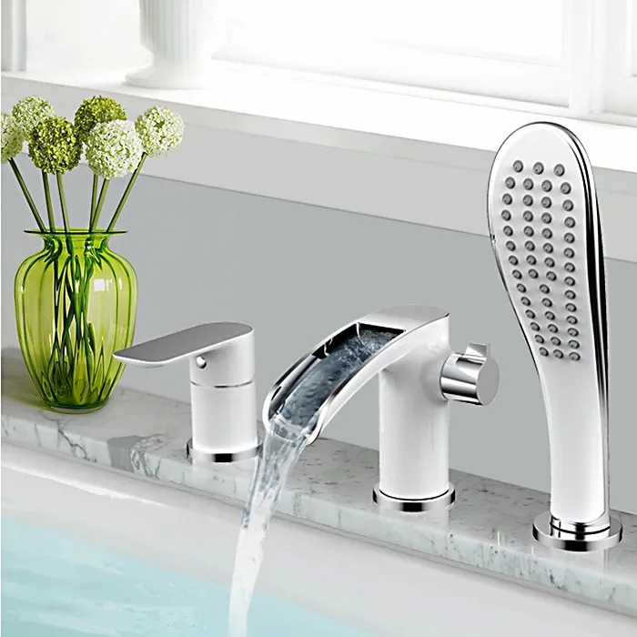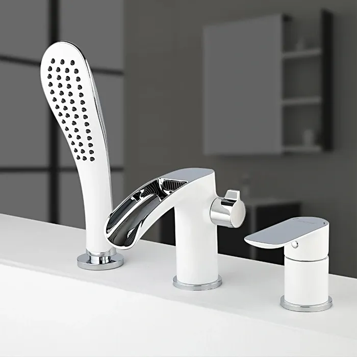 Смеситель на борт ванны Gappo Noar G1148-8 - стильная латунная модель для установки на борт ванны, на 3 отверстия. Оригинальный каскадный излив, покрытие хромированное (цвет белый / хром), управление однорычажное, гибкая подводка воды, удобная душевая лейка.