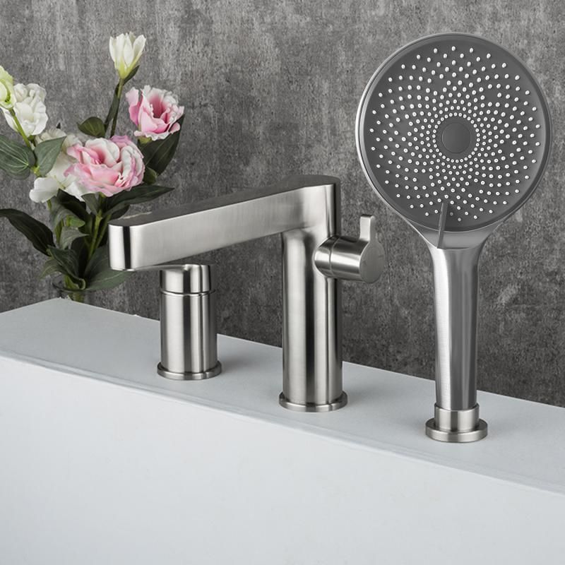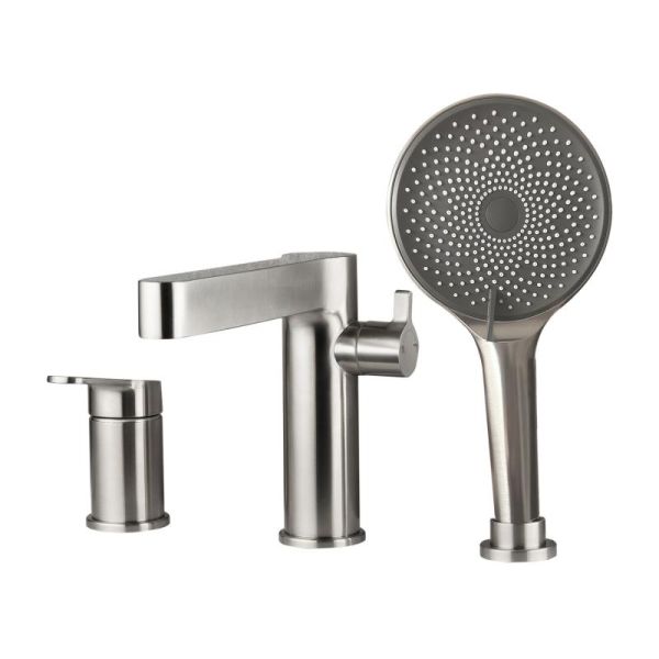 Смеситель на борт ванны Gappo G1199-30 - модель из нержавеющей стали с отделкой "сатин", установка на 3 отверстия. Однорычажное управление обеспечивает простую и быструю регулироваку напора и температуры воды. Излив оснащен аэратором. В комплекте душевой гарнитур с трехрежимной лейкой и шланги подключения.