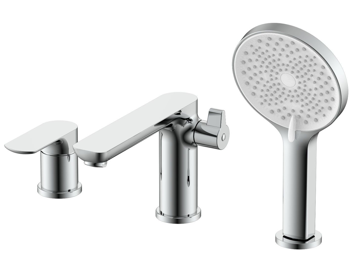 Смеситель на борт ванны Raglo R03.31.Цвет: хром.Материал: латунь.Управление: однорычажное.Механизм: керамический картридж.Излив: фиксированный. Аэратор.Форма ручного душа: круглая.Количество режимов струи ручного душа: 3.Стандарт подводки: G 1/2.Тип подводки: гибкая.Отверстия для монтажа: 3.Монтаж: на борт ванны.