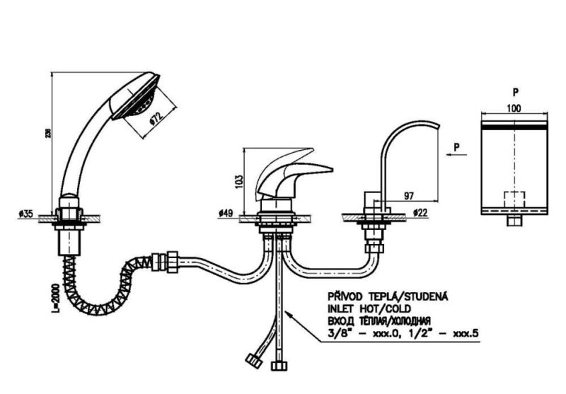 Смеситель на борт ванны Rav Slezak Dunaj D467.5YZ золото купить