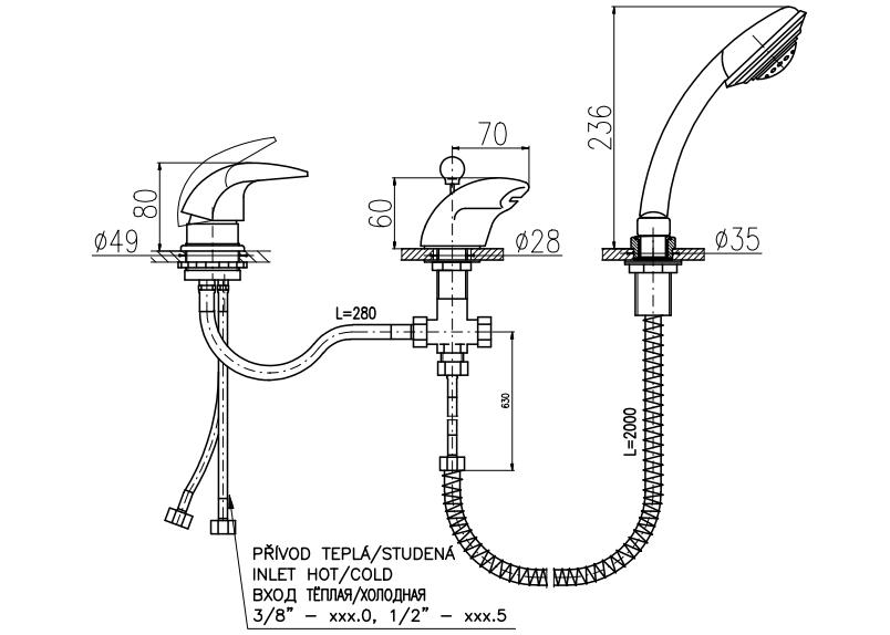 Смеситель на борт ванны Rav Slezak Dunaj D470.5S хром