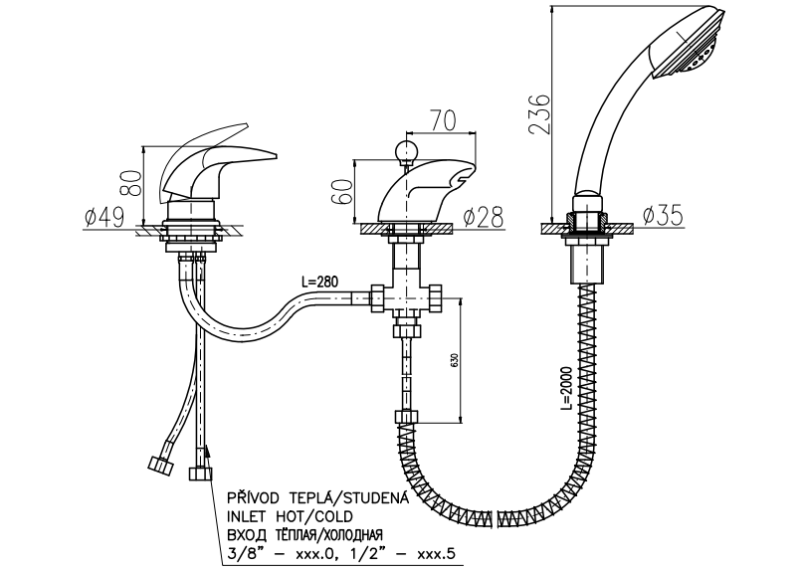 Смеситель на борт ванны Rav Slezak Dunaj D470.5S хром
