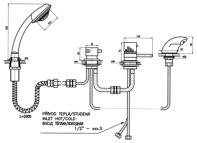 Смеситель на борт ванны Rav Slezak Dunaj DT270.5P хром