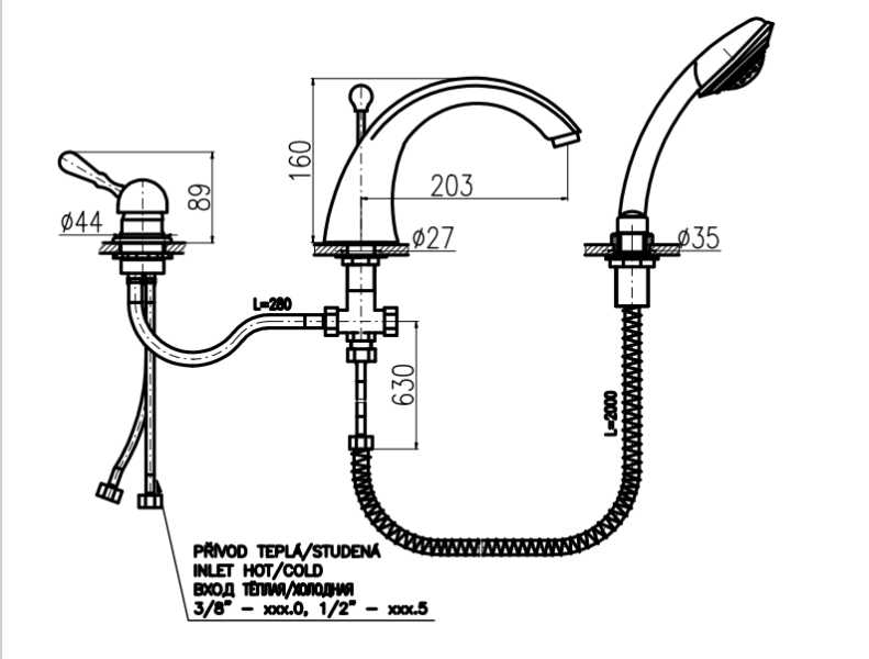 Смеситель на борт ванны Rav Slezak Labe L469.5SSM бронза