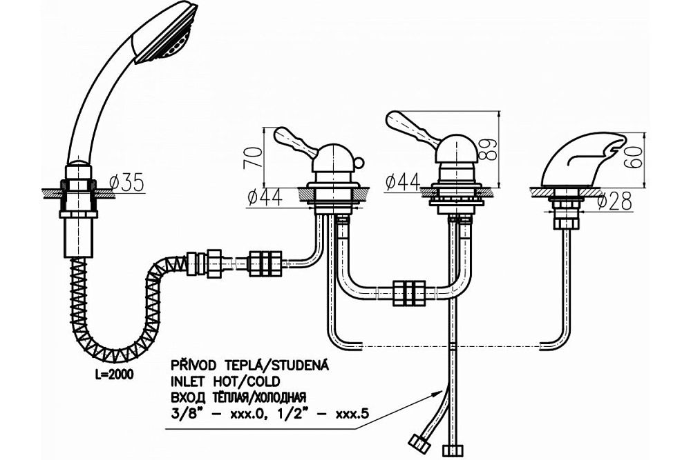 Смеситель на борт ванны Rav Slezak Labe L470.5PSM бронза