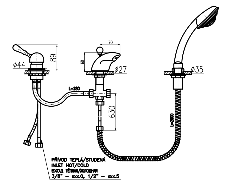 Смеситель на борт ванны Rav Slezak Labe L470.5SSM бронза