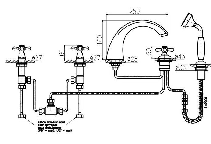 Смеситель на борт ванны Rav Slezak Labe L476.5PSM бронза