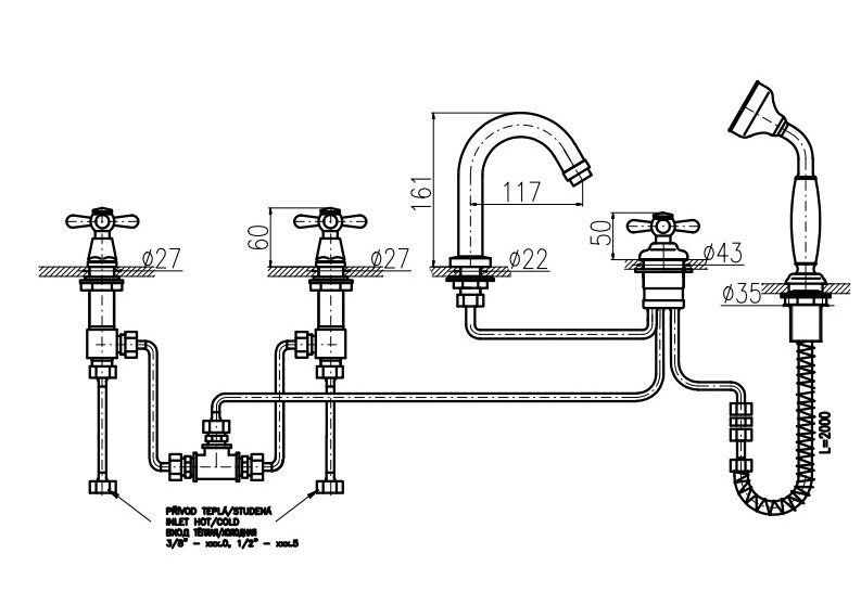 Смеситель на борт ванны Rav Slezak Morava retro MK162.5P хром