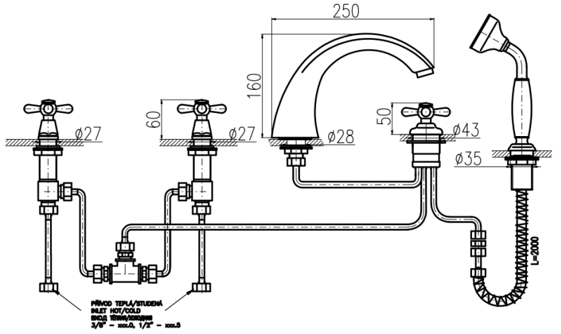 Смеситель на борт ванны Rav Slezak Morava retro MK469.5PSM бронза