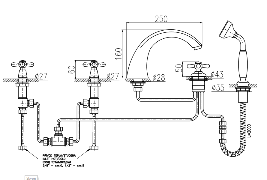 Смеситель на борт ванны Rav Slezak Morava retro MK569.5PSM бронза