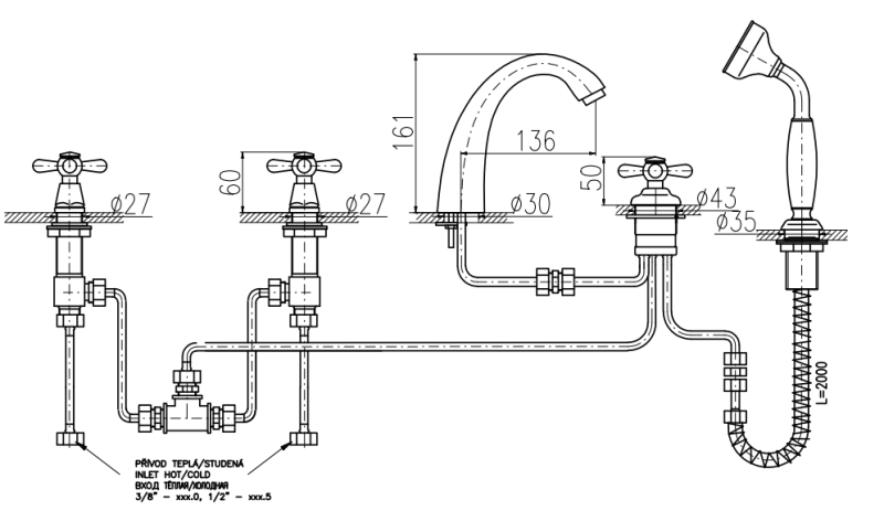 Смеситель на борт ванны Rav Slezak Morava retro MK576.5PSM бронза