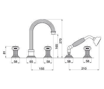 Смеситель на борт ванны с выдвижным душем и переключателем Cezares APHRODITE-BVD-02-Sw