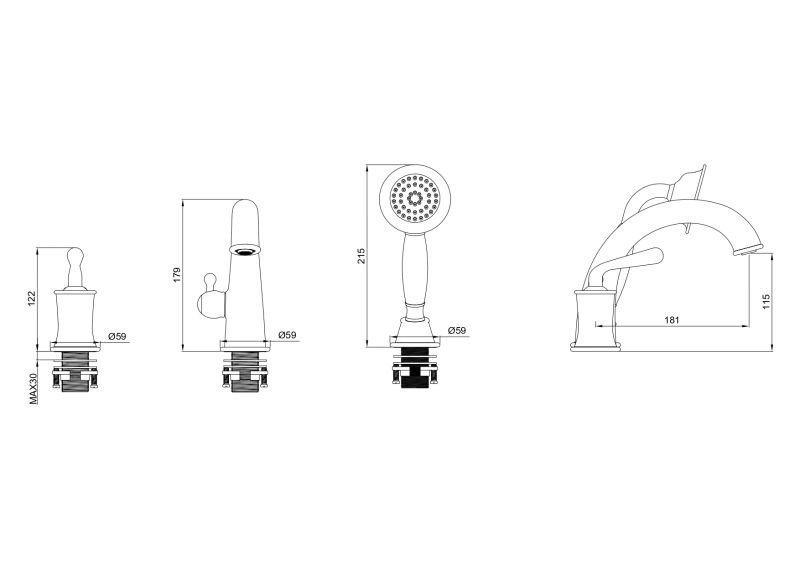 Смеситель на борт ванны Wonzon & Woghand Steam WW-88659008-BG брашированное золото
