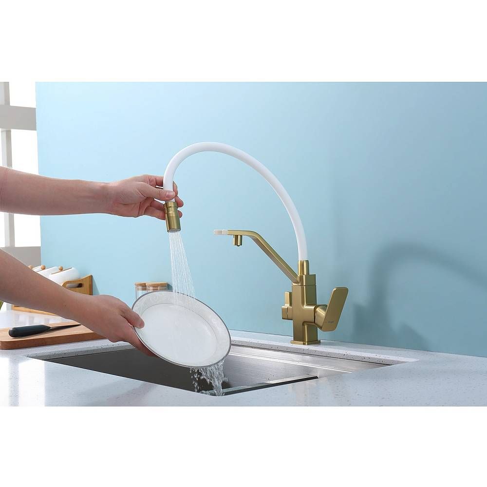 Смеситель Raglo R85.62.03 для кухни с подключением фильтра золотой сатин купить